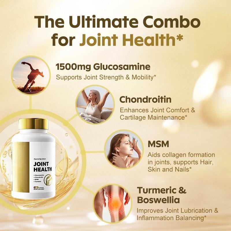 Nuestra Fórmula Avanzada para la Salud Articular combina Glucosamina, Condroitina, MSM y Cúrcuma, una sinergia poderosa comprobada para amortiguar las articulaciones, reconstruir el cartílago y reducir la inflamación de forma natural. Ya sea rigidez matutina o dolor post-entrenamiento, esta mezcla te ayuda a sentirte fuerte, flexible y sin dolor nuevamente.